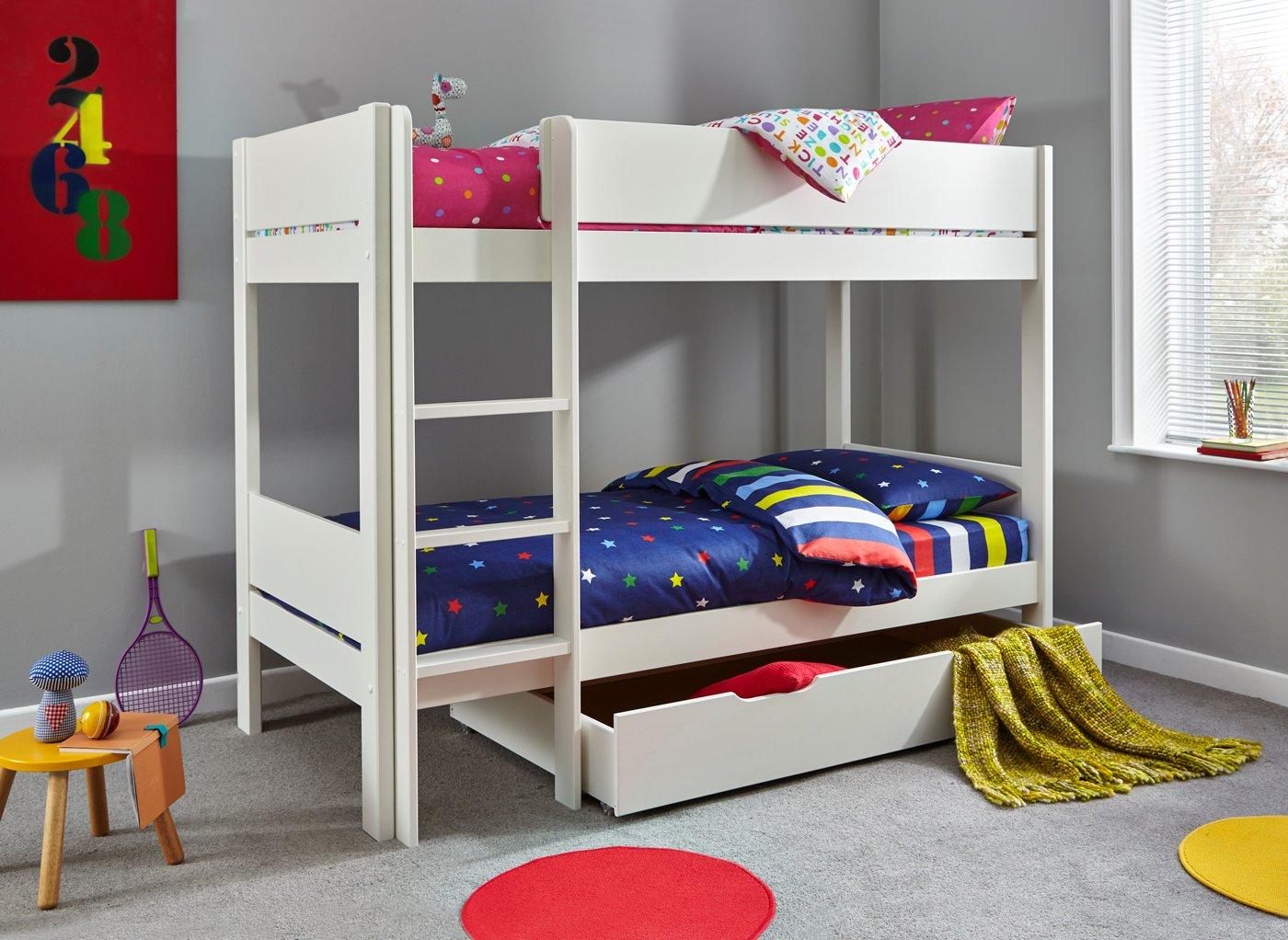 - Colours: Bunk beds with storage come in a variety of colours. Popular colours include classic white, modern grey or a natural wood finish. What look would fit best in your home?
