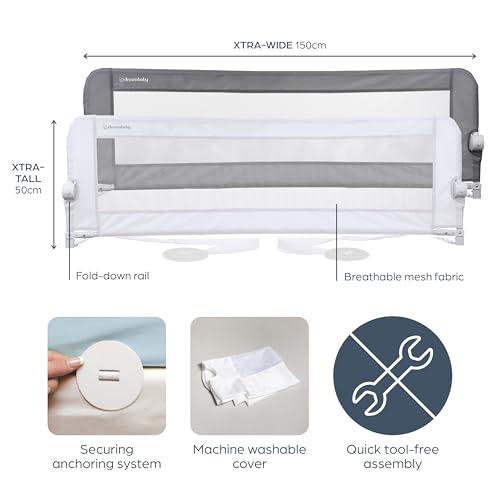 - At amazon.co.uk you can purchase Dreambaby Nicole Bed Guard Rail for Toddlers - Extra Wide 150cm & 50cm Tall - Foldable & Portable Bedrail - Childrens Bed Safety Guards - Fits Recessed and Flat Bed Frames - White for only £28.99